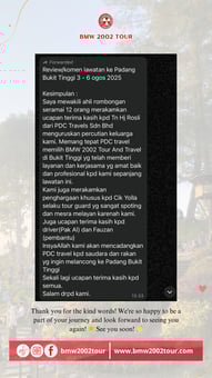 BMW 2002 Tour (PT. Bukittinggi Minang Wisata 2002 Tour) was founded in 2002 in Bukittinggi. With 23 years of experience, our friendly and professional team is committed to giving you the best travel experience. We offer Padang–Bukittinggi tour packages, transportation, hotel vouchers, homestays, flight tickets, and many more services to make your trip smooth and enjoyable.