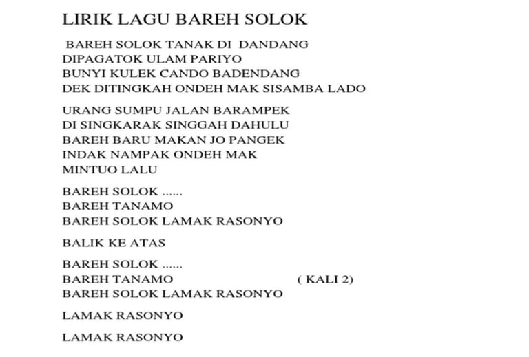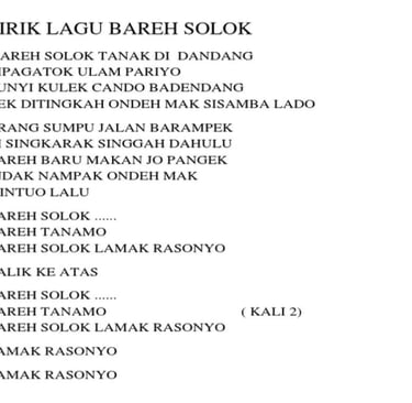 LAGU BAREH SOLOK : KISAH DALAM IRAMA MINANGKABAU